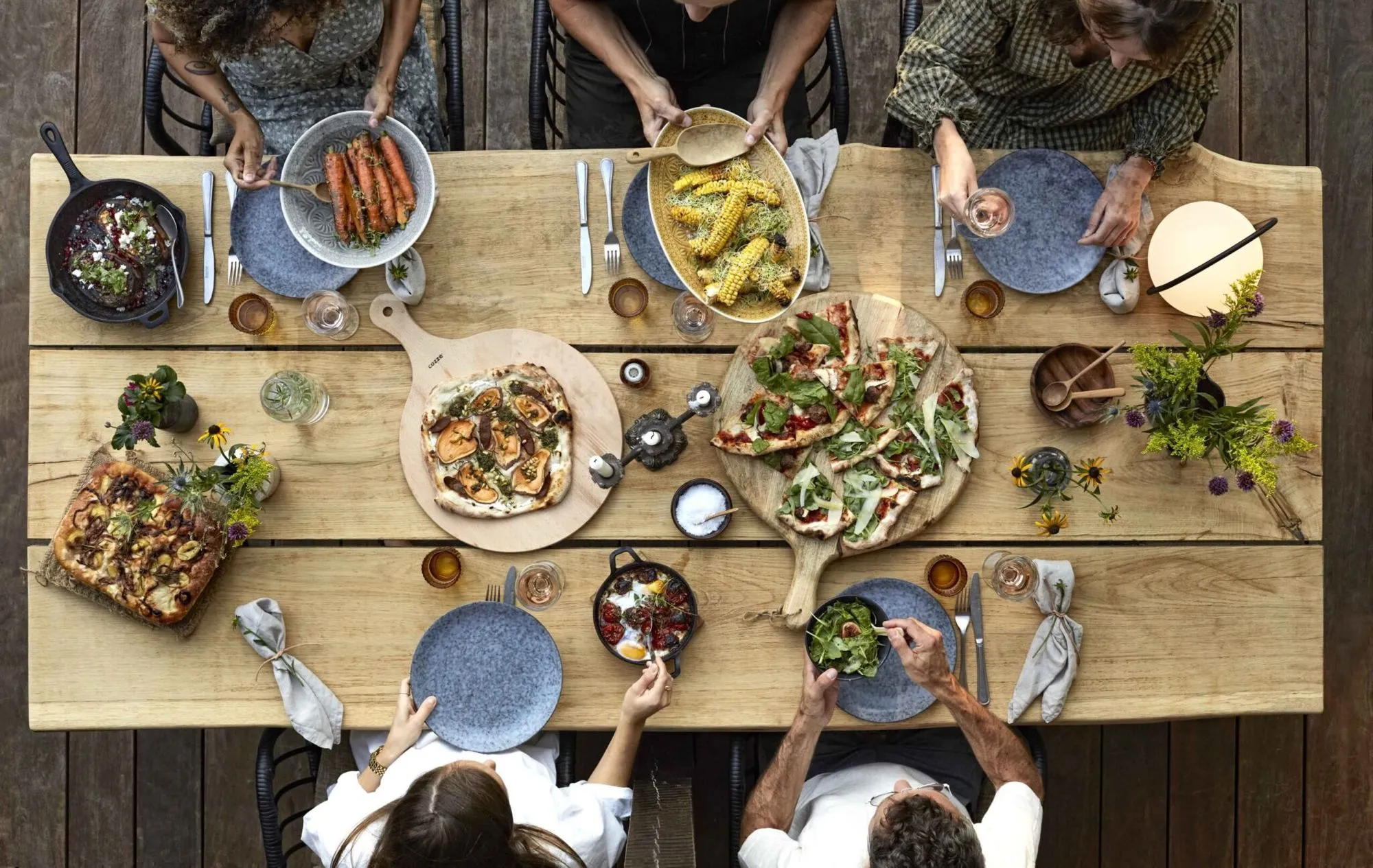 ירקות, לחם פוקצ’ה טרי אפוי, קלצונה פריך ועוד מגוון רחב של מאכלים מכל הסוגים.