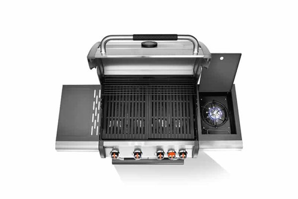 ארבעה מבערים מנירוסטה איכותית 304 בעוצמת חום של 14,000 BTU כל אחד, סה”כ 56,000 BTU.
