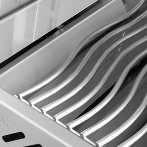 משטח צלייה קומה שנייה. הצתה אלקטרונית. לכל מבער מצת נפרד לוויסות טמפרטורות הצלייה (כולל המבער האחורי). רשתות עשויות נירוסטה איכותית בעיצוב גלי ייחודי לחברת נפוליאון. העיצוב הייחודי של רשתות הצלייה מאפשרות את הזזת המזון בקלות יתרה. גריל גז בנוי עצמתי עשוי נירוסטה איכותית במיוחד. מכסה נירוסטה דו שכבתי לאגירת חום אופטימאלית. צידי המכסה עשויים יציקת אלומיניום עמידה במיוחד. ידית פתיחה ארגונומית למכסה המאפשרת פתיחה וסגירה קלה. מצתי המבערים מלווים בתאורת אווירה כחולה ייחודית לגריל זה i-Glow. מד חום בעיצוב חדשני. מגש שומנים נשלף בקדמת הגריל.מימדים: