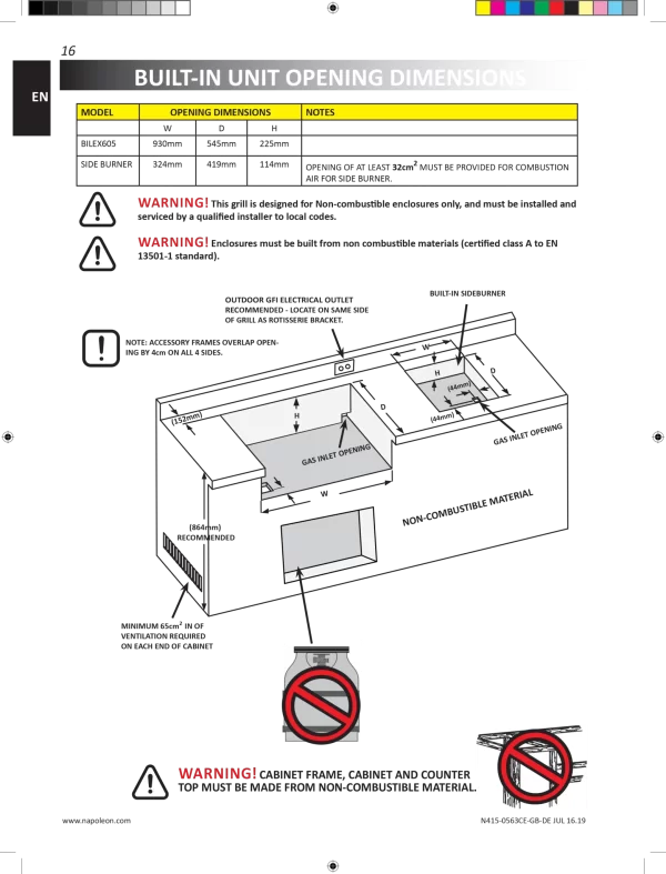 אחריות נשיאותית של נפוליאון ל-10 שנים בכפוף לתנאים והגבלות של היצרן, לפרטים לחצו כאן.כאשר ממקמים גריל בילט אין במטבח חוץ באזור של ים או אזור עם רוחות מרובות עדיף למקם את הגריל כשהגב שלו פונה לכיוון שממנו מגיעה הרוח. הכוונה היא לדוג’ שאם הרוח מגיעה מכיוון מערב, גב הגריל צריך להיות מופנה לכיוון זה. *כאשר ממקמים גריל בילט אין באזור של ים או אזור עם רוחות מרובות צריך למקם את הגריל כאשר הגב שלו פונה לכיוון שממנו מגיעה הרוח. לדוגמה: אם הרוח מגיעה מכיוון מערב גב הגריל צריך להיות מופנה לכיוון הזה. במידה וההתקנה תהיה שחזית הגריל תהיה מול הרוח תבוטל האחריות.