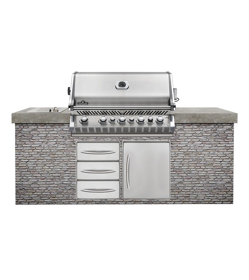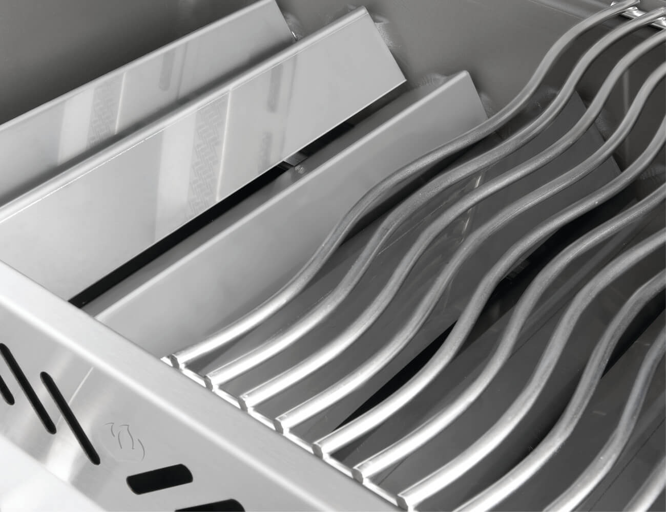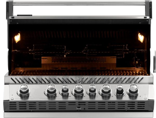משטח צלייה קומה שנייה. הצתה אלקטרונית. לכל מבער מצת נפרד לוויסות טמפרטורות הצלייה (כולל המבער האחורי). רשתות עשויות נירוסטה איכותית בעיצוב גלי ייחודי לחברת נפוליאון. העיצוב הייחודי של רשתות הצלייה מאפשרות את הזזת המזון בקלות יתרה. מכסה כרום מלוטש דו שכבתי לאגירת חום אופטימאלית עשוי יציקת אלומיניום. צידי המכסה עשויים יציקת אלומיניום עמידה במיוחד. בפתיחת הגריל ניתן להצמיד את המכסה העליון לקיר האחורי זאת הודות לעיצוב הייחודי של הגריל. ידית פתיחה ארגונומית למכסה המאפשרת פתיחה וסגירה קלה. מצתי המבערים מלווים בתאורת אווירה כחולה ייחודית לגריל זה i-Glow. קיימת תאורה פנימית בפנים הגריל לצלייה נוחה בשעות החשיכה. מד חום בעיצוב חדשני. מגש שומנים נשלף בקדמת הגריל.