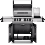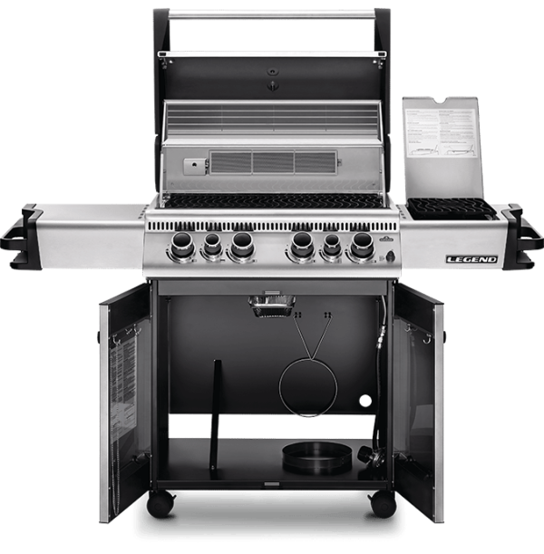 מפזרי להבה עשויים נירוסטה – ממוקמים בצורה מדורגת לפיזור חום והפחתת התפרצות הלהבה.מדף הגריל ניתן לקיפול, עם ווים לתליית אביזרי צלייה.