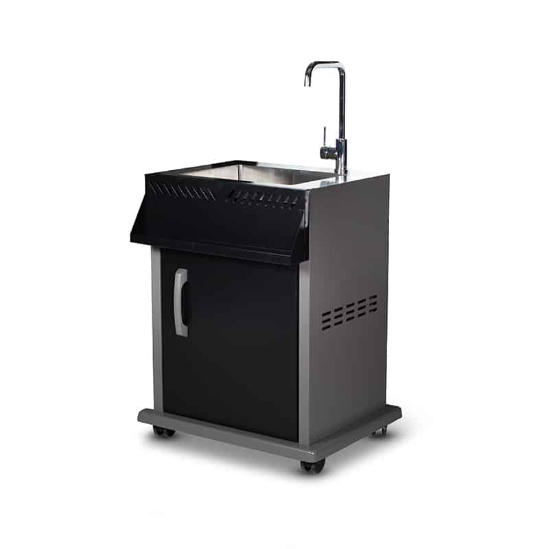 - ארון אחסנה תחתון לשמירה על ציוד וכלי הגריל.(היחידה מגיעה עם צינור אינסטלציה לכיור – חיבור היחידה לנקודת מים וניקוז צריכה להתבצע ע"י אינסטלטור מוסמך).