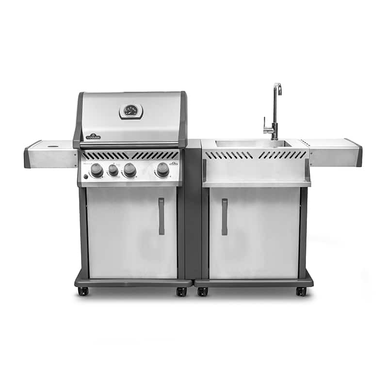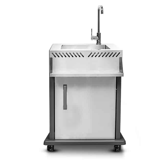 - ארון אחסנה תחתון לשמירה על ציוד וכלי הגריל.(היחידה מגיעה עם צינור אינסטלציה לכיור – חיבור היחידה לנקודת מים וניקוז צריכה להתבצע ע"י אינסטלטור מוסמך).