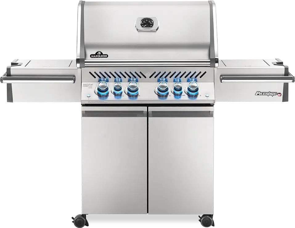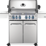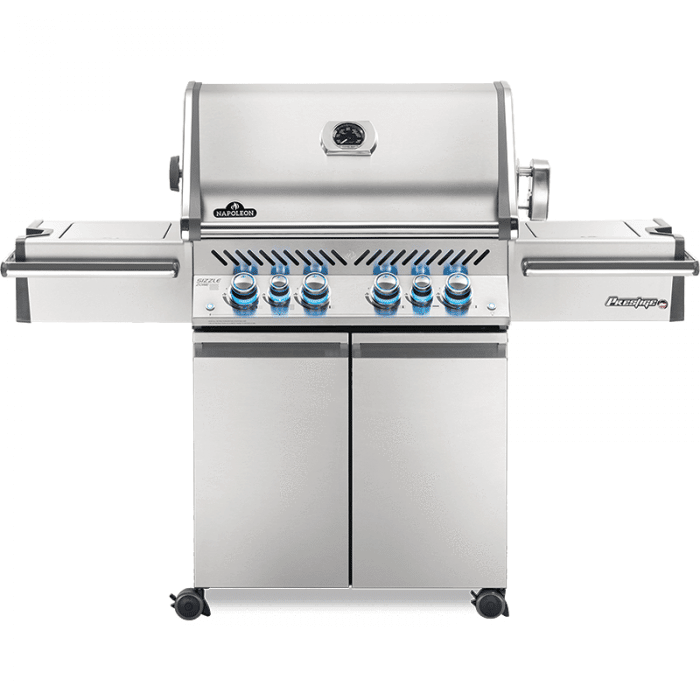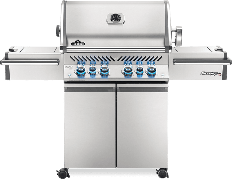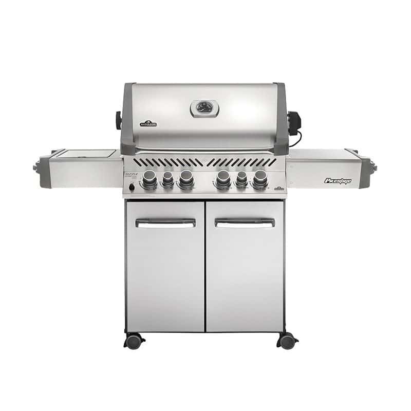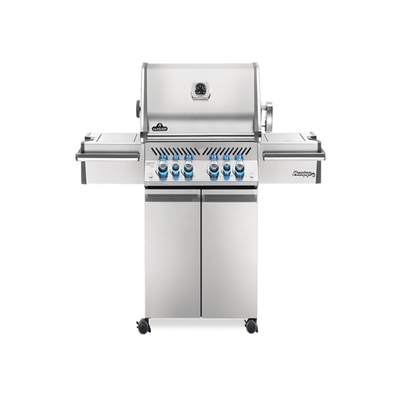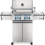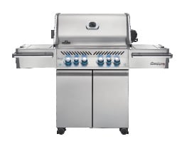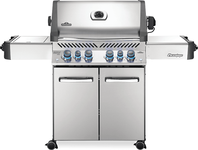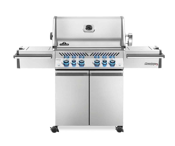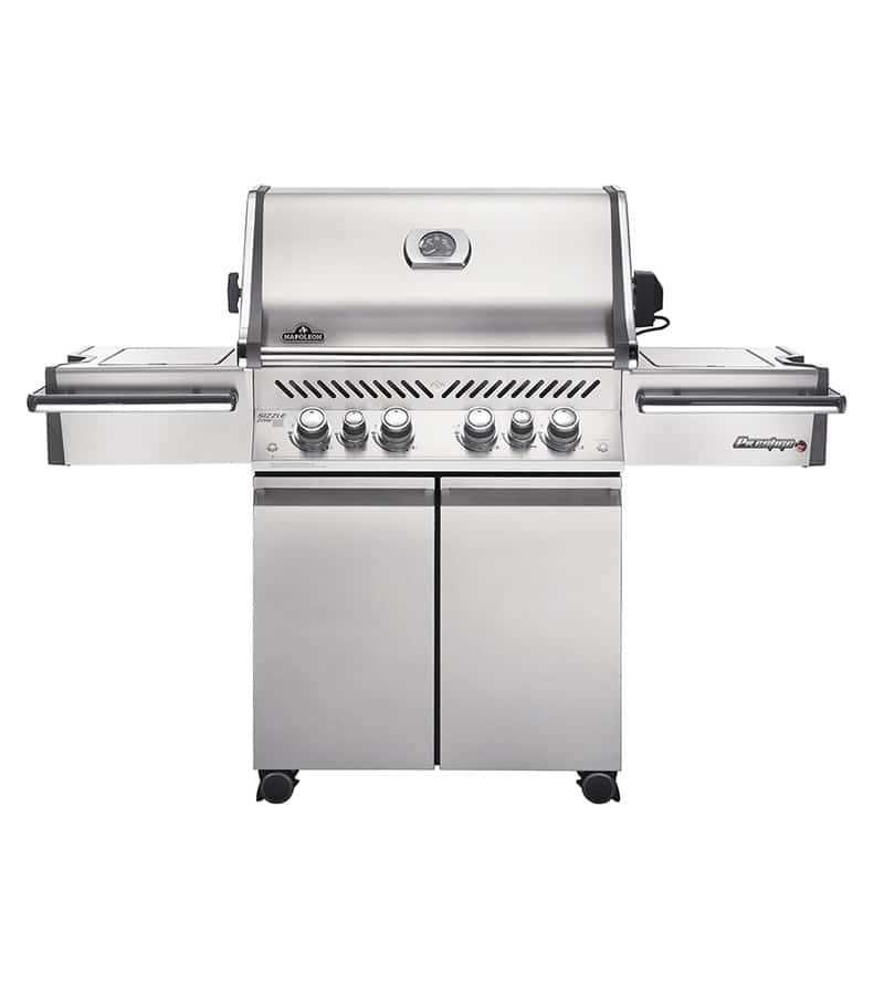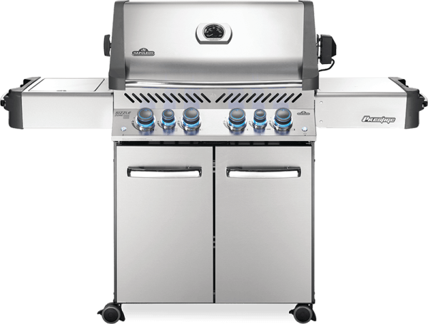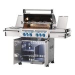 ארבעה מבערים מנירוסטה איכותית במיוחד. כירת צד קרמית אינפרא אדום עוצמתית במיוחד SIZZLE ZONE מגיעה למעל 500 מעלות!. כירת הצד לא ניתנת לקיפול. מבער אחורי בעוצמת חום גבוהה במיוחד. אמבטיית הגריל עשויה יציקת אלומיניום מלאה השומרת על החום בצורה מיטבית, ותורמת לשמירת החום גם בצלייה בטמפ’ נמוכה. יציקת האלומיניום מאפשרת Self-Cleaning (ניקוי עצמי) לגריל בצורה יעילה. מבנה הגריל עשוי יציקת אלומיניום. משטח צלייה קומה שנייה. הצתה אלקטרונית. רשתות עשויות נירוסטה איכותית בעיצוב גלי ייחודי לחברת נפוליאון. העיצוב הייחודי של רשתות הצלייה מאפשרות את הזזת המזון בקלות יתרה. מפזרי להבה עשויים נירוסטה – ממוקמים בצורה מדורגת לפיזור חום והפחתת התפרצות הלהבה. מכסה נירוסטה דו שכבתי, לאגירת חום אופטימאלית. צדי המכסה עשויים יציקת אלומיניום עמידה במיוחד. ידית פתיחה ארגונומית למכסה המאפשרת פתיחה וסגירה קלה. מדפי הגריל עשויים נירוסטה ובעלי ידיות לתליית אביזרים ומגבות. במדף הימני של הגריל ישנה גומחה הניתנת למילוי בקרח לשמירה על קור בקבוקי השתייה והבשר המיועד לצלייה. מד חום בעיצוב חדשני.