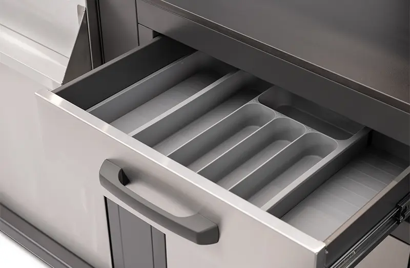 - מגירה עליונה עם מסילה שקטה – לאחסון כלי עבודה, אביזרים או סכו"ם
