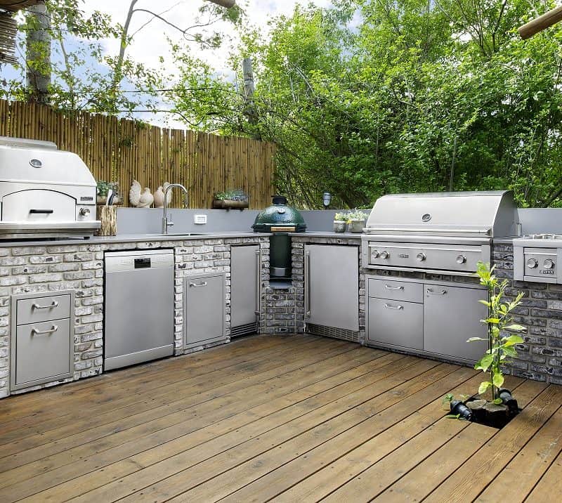 המטבח כולל: מוצרים מבית מותג העל היוקרתי LYNX – גריל גז דגם L42, כירת צד כפולה, טאבון משולב נירוסטה איכותית ואבן ובעל מבערי אינפרא אדום ויחידות אחסון לכלי עבודה, בישול ועוד. בנוסף כולל מטבח החוץ מעשנה מבית BIG GREEN EGG ויחידות מטבח שונות כמו כיור, מקרר, ICE MAKER ומדיח כלים.